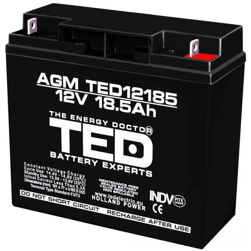 Acumulator 12V, AGM, VRLA, F2 / T2, 18.5A, TED12185