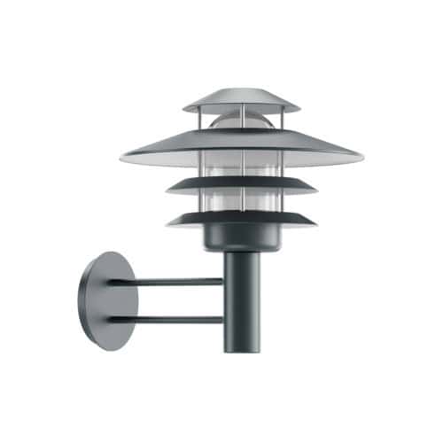 Aplică iluminat exterior, construită dintr-un abajur din sticlă transparentă sau mată; Corp de fixare din aluminiu acoperit cu pulbere. Surse de lumină: E27 LED 5–18 W. Opțional, se poate comanda o priză 230 V, IP54 și senzor de mișcare.