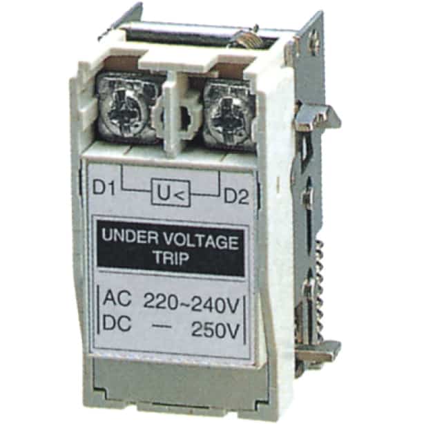 Eliberarea de subtensiune deschide automat intrerupatorul cand tensiunea scade la o valoare cuprinsa intre 35% si 70% din tensiunea de linie. Intrerupatorul nu poate fi comutat din nou pana cand tensiunea nu revine la 85% din tensiunea de linie. Eliberarea de subtensiune poate fi instalata cu usurinta in comportamentul accesoriu stang al întreruptoarelor PM-M. Gama tensiunii de declansare: 0,35 ~ 0,7 Vn. Tensiune MCCB: 0,85Vn. Frecventa (numai AC): 45Hz ~ 65Hz. Electric Casa recomanda bobina MCCB Omu System.