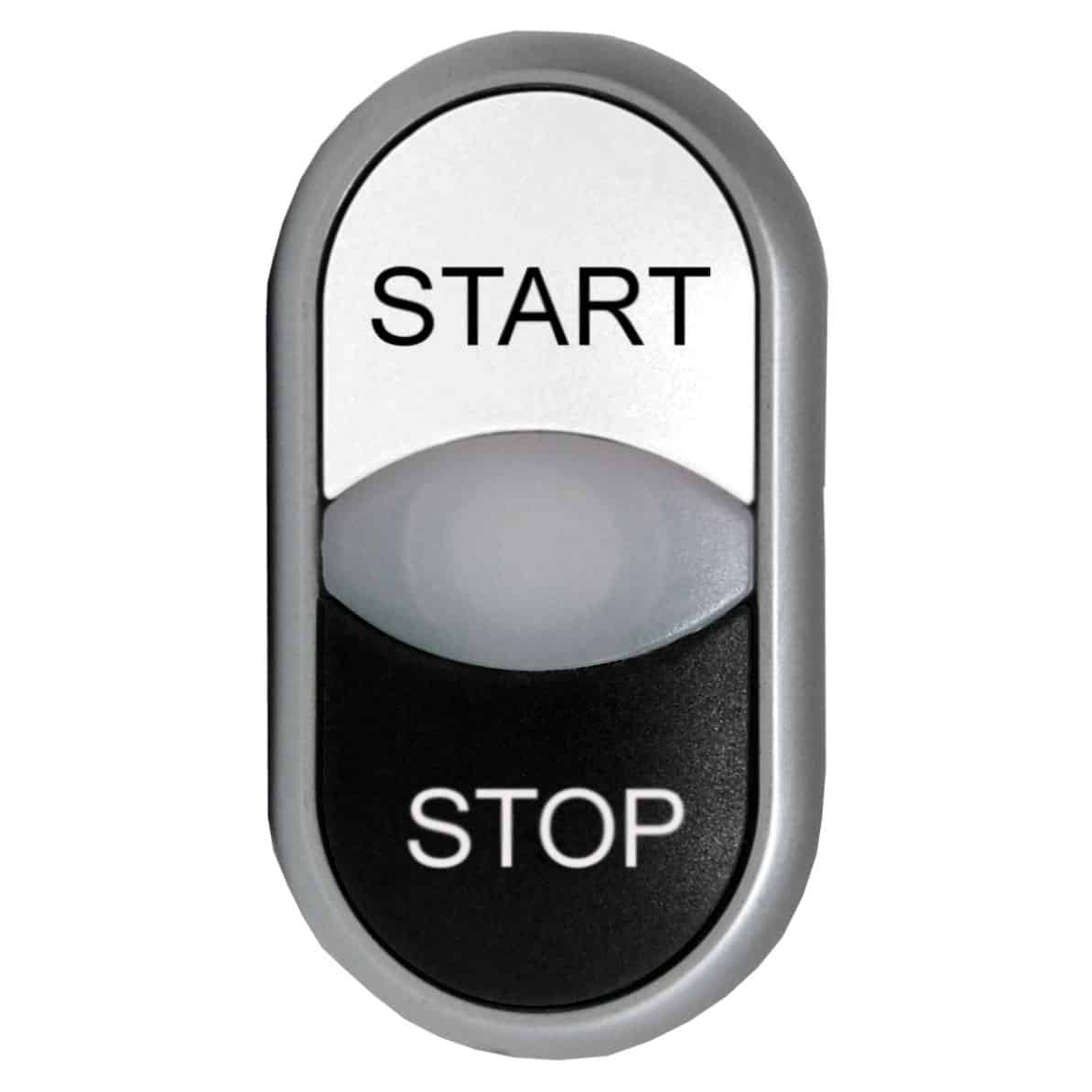 Buton comanda Schrack, dublu, luminos START/STOP, alb/negru, MM216708