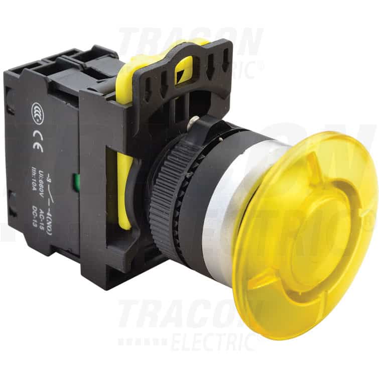 Buton comanda Tracon, ciuperca (avarie), cu bec, 1ND, galben, NYG3-MLY