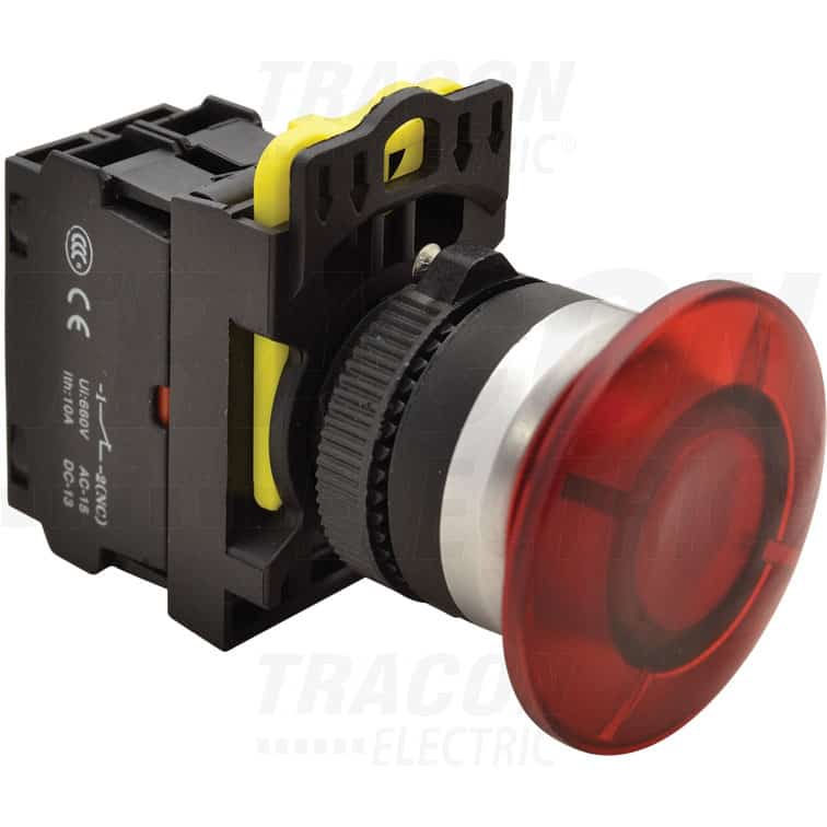 Buton comanda Tracon, ciuperca (avarie), cu bec, 1NI, rosu, NYG3-MLR