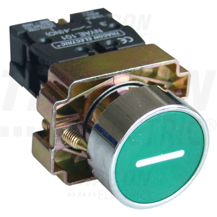 Buton comanda Tracon, cu revenire, inscriptionat ON, 1ND, verde, NYGBA3311Z