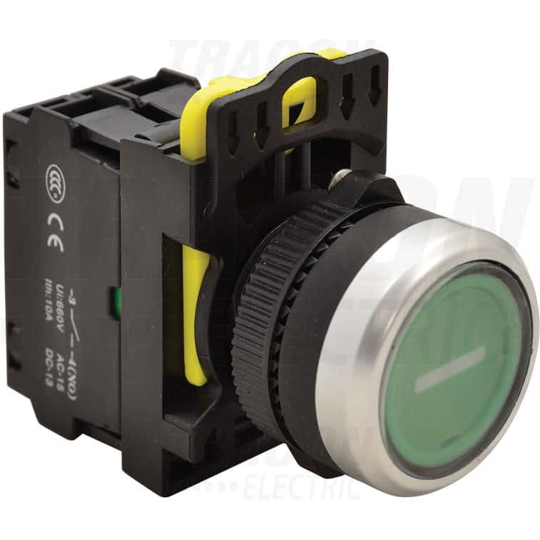 Buton comanda Tracon, cu revenire, inscriptionat ON, cu bec, 1ND, verde, NYG3-P1L