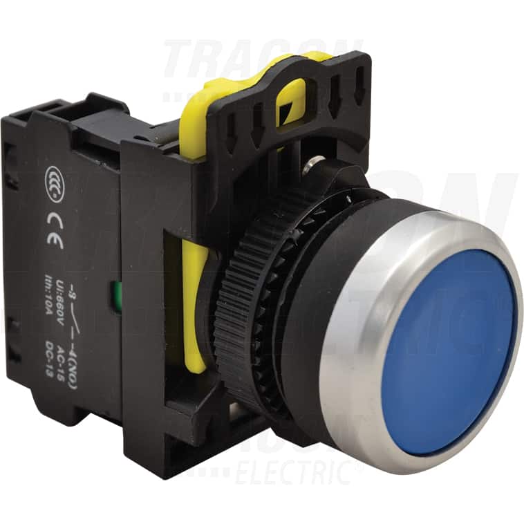 Buton comanda Tracon, cu revenire OFF, 1ND, albastru, NYK3-B