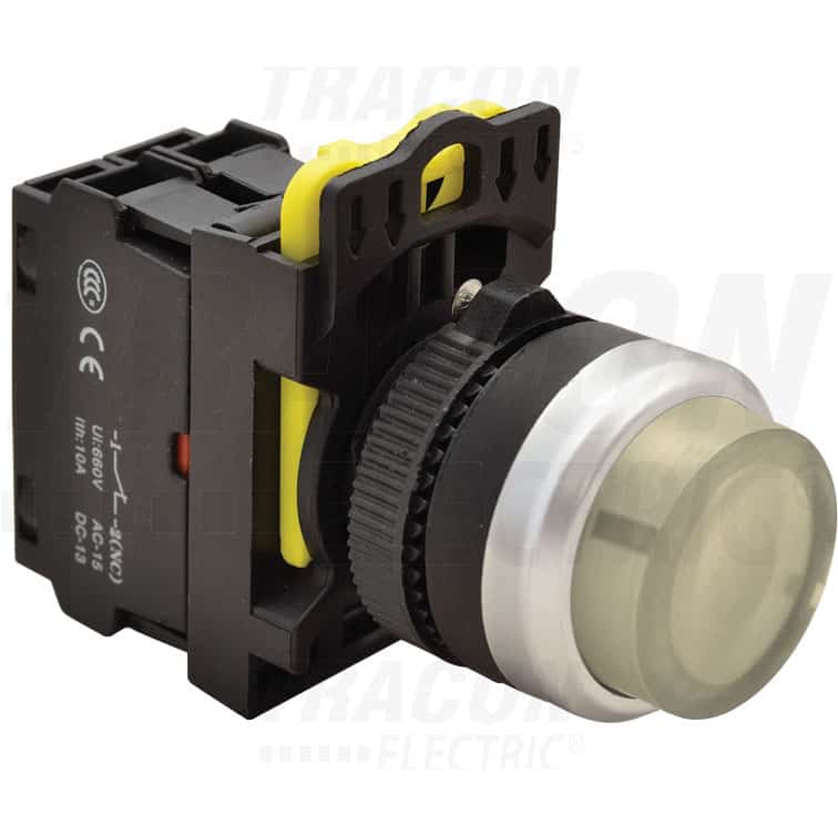 Buton comanda Tracon, cu revenire si lumina, buton in relief, 1ND, alb, NYG3-HLW