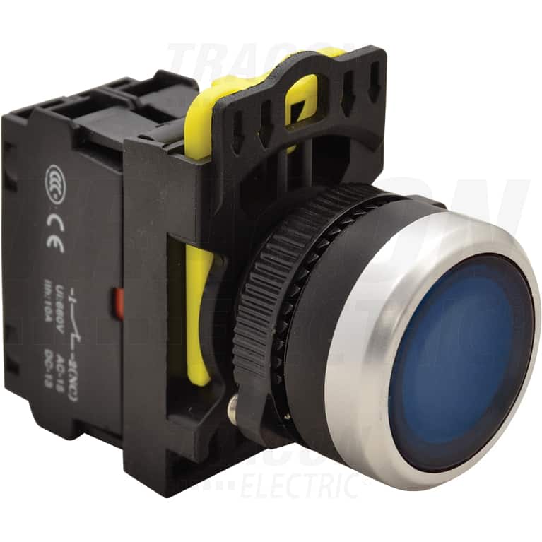 Buton comanda Tracon, cu revenire si lumina ON-OFF, 1ND, albastru, NYK3-LB