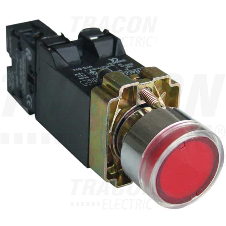 Buton comanda Tracon, cu revenire si lumina ON, rosu, cu tranformator, 230VAC, D22, NYGBW3441P