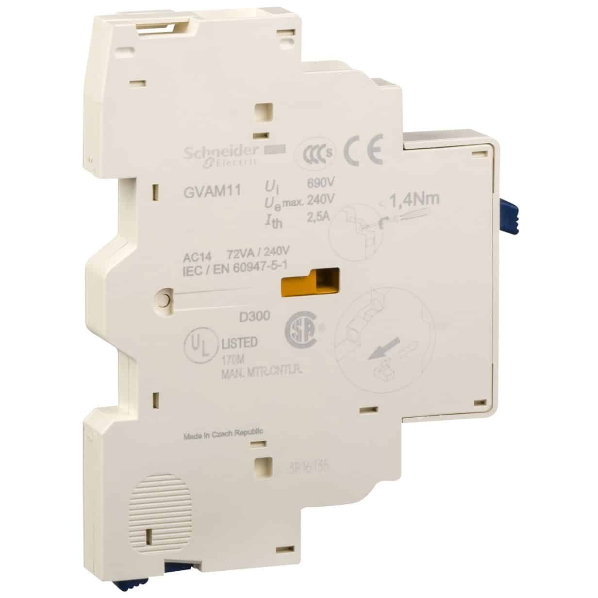 Contact auxiliar motor protector Schneider, lateral, ID, GVAM11
