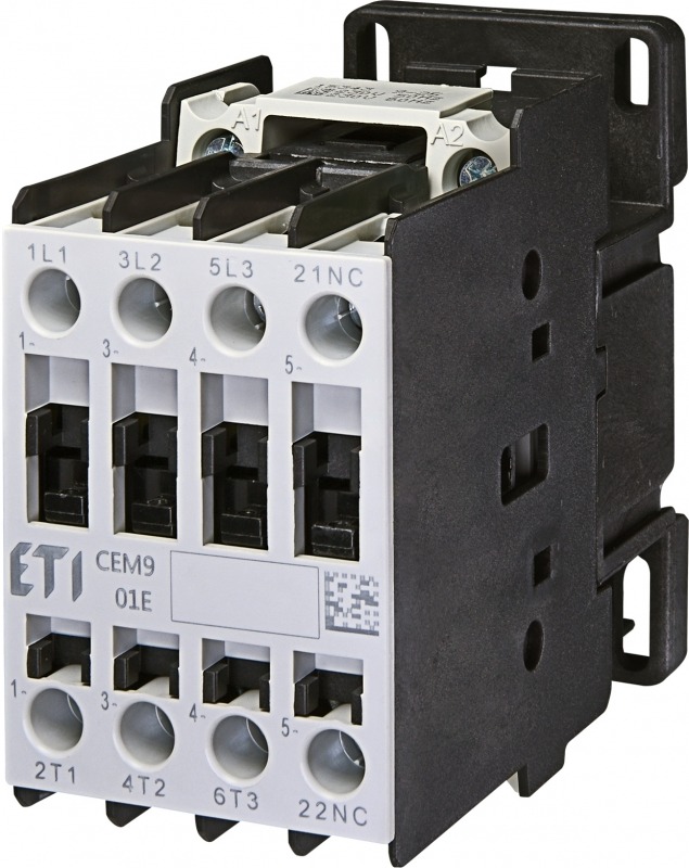 Contactoarele Eti sunt folosite pentru a controla de la distanta si de a proteja ( in combinatie cu relee de suprasarcina ) motoare electrice si alte aparate cu putere nominala de pana la 132kW ( la 400V regim AC3 ). Avantaje: montare pe sina si pe placi de montaj, de dimensiuni mici si de inalta performanta tehnica, pierdere de energie redusa, protectie impotriva atingerii directe ( IEC 536 ) IP20, gama larga de accesorii, dispozitiv de protectie la supratensiune ( ca optiune ), inversor cu dispozitiv de blocare mecanica, tensiunea de alimentare bobina: 24VAC, 48VAC, 110VAC, 230VAC, 400VAC.Electric Casa recomanda contactor Eti.
