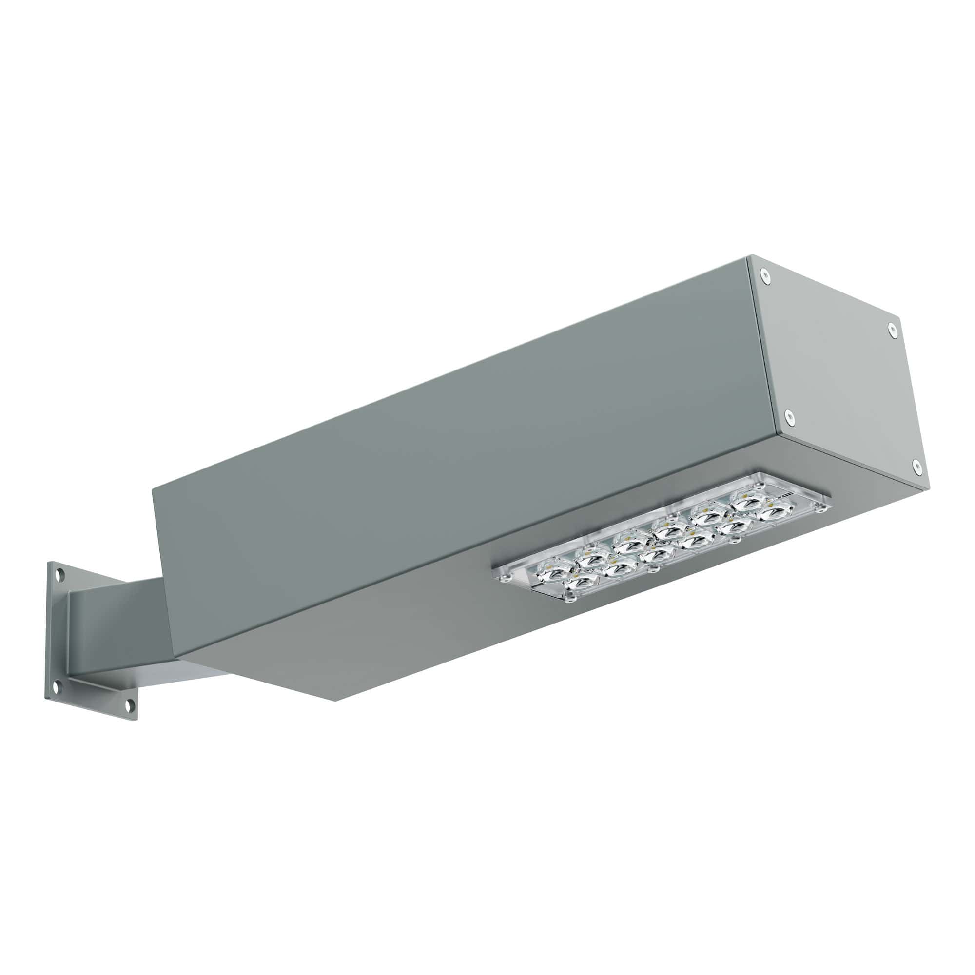 Abajur pentru stâlp de iluminat modern, cu fixare adaptată pentru a fi montat atât pe fațadă cât și pe stâlp. Corpul din aluminiu formează baza pentru modulele LED sigilate și camera echipamentelor. Mâner reglabil 0, 5, 10 (grade) care permite montarea ușoară pe fațadă sau stâlp. Posibilitate pentru a alege unghiuri optice diferite.