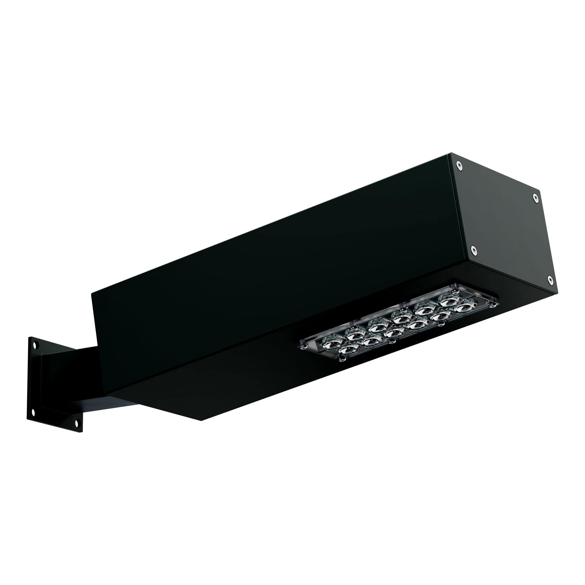 Abajur pentru stâlp de iluminat modern, cu fixare adaptată pentru a fi montat atât pe fațadă cât și pe stâlp. Corpul din aluminiu formează baza pentru modulele LED sigilate și camera echipamentelor. Mâner reglabil 0, 5, 10 (grade) care permite montarea ușoară pe fațadă sau stâlp. Posibilitate pentru a alege unghiuri optice diferite.