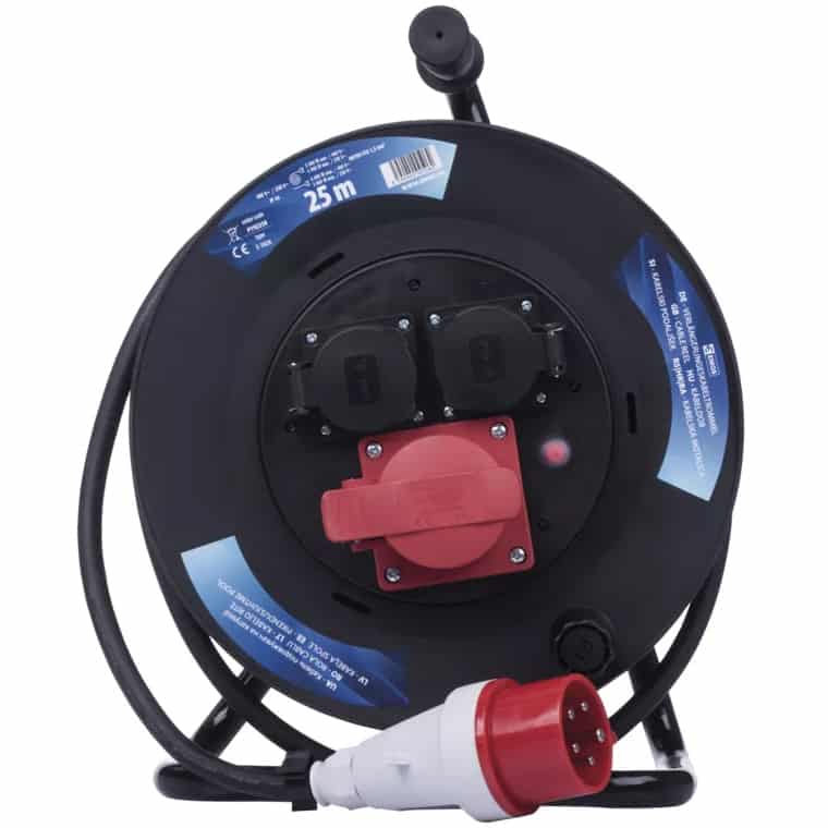 Cauciuc trifazat. Cablu prelungitor trifazat pe tambur cu izolatie din neopren. Imun la apa (IP44), la temperaturi extreme si la uleiuri. Cablu prelungitor EMOS cu intrerupere termica. Suport stabil, tambur si maner acoperit cu cauciuc.