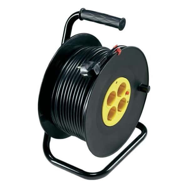 Derulator tambur PVC Wconn, negru, protectie la supraincalzire, 4 prize, 2P+E, 50 metri, intrerupator