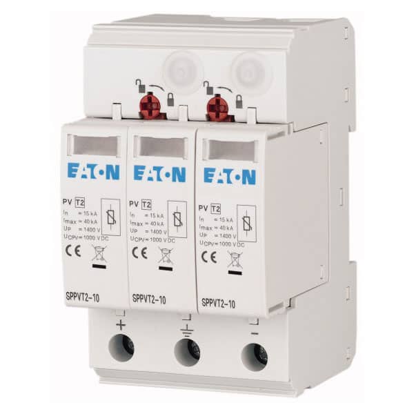 Descarcator la supratensiune fotovoltaic Eaton, 3+0, debrosabil fara semnalizare, 3P, C, 12.5kA, 1000VDC, 176090