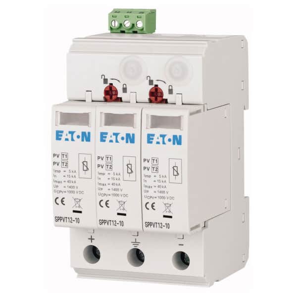 Descarcator la supratensiune fotovoltaic Eaton, 3+0, debrosabil fara semnalizare, 3P, C, 600VDC, 177257