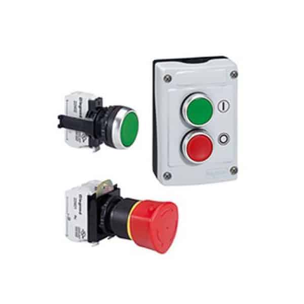 Dispozitive de comanda si semnalizare. Unitati complecte compuse din: taste si subansambluri: conectare cu surub (bloc cu LED + etrier). IP 66. Conform IEC 60947-5-1.