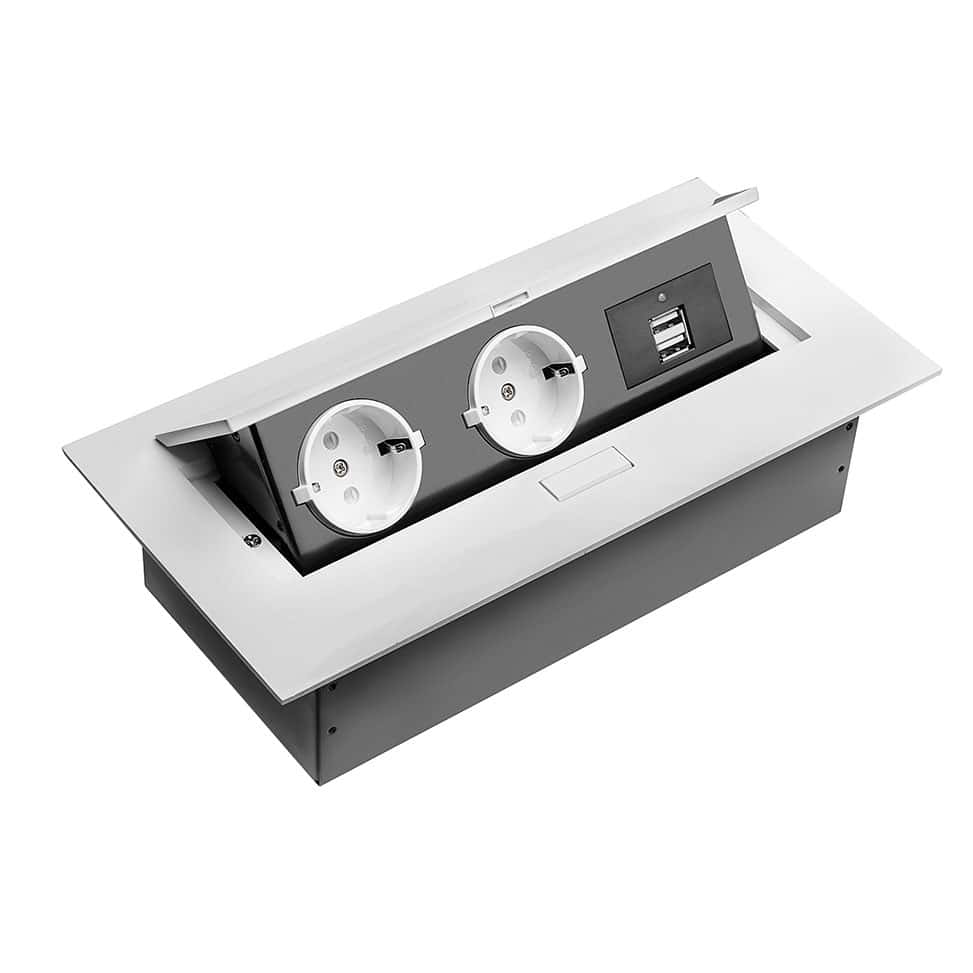 Multipriza 2 posturi GTV, 2x2P+E+2xUSB, rabatabila, alb, 16A, AE-PBU02GS-10N