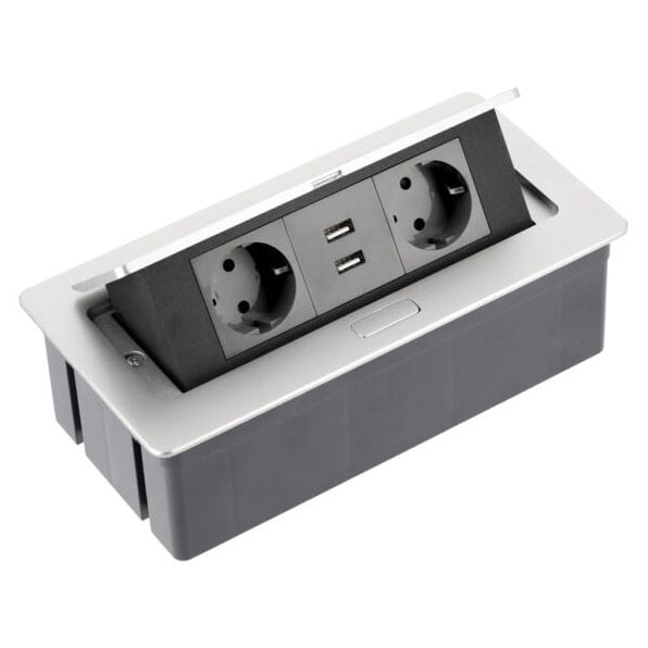 Multipriza 2 posturi GTV, 2x2P+E+2xUSB, rabatabila, argintiu, 16A, AE-PBSUC2GS-53N