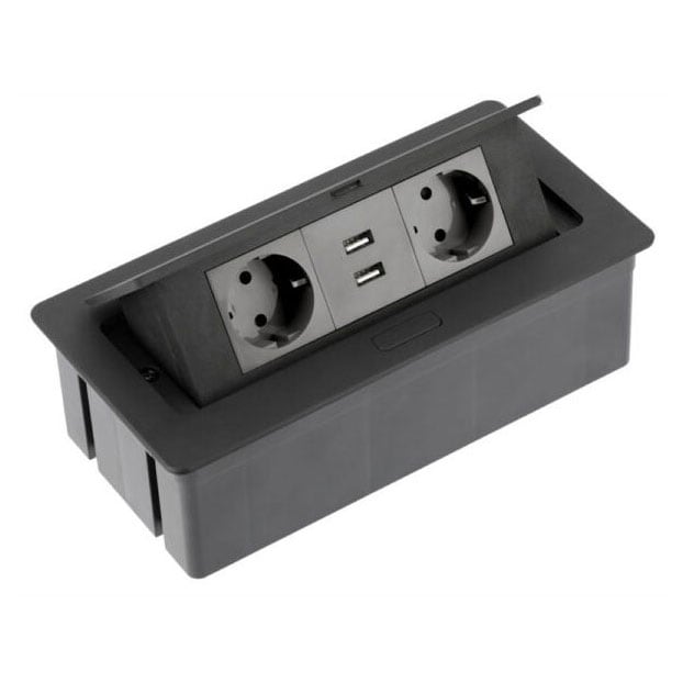 Multipriza 2 posturi GTV, 2x2P+E+2xUSB, rabatabila, negru, 16A, AE-PBSUC2GS-20NN