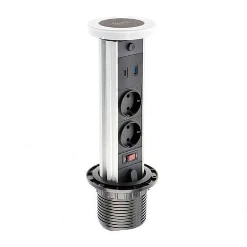 Multipriza 2 posturi GTV, 2x2P+E+2xUSB, retractabila, alb, 16A, AE-BPW2SCAM-10