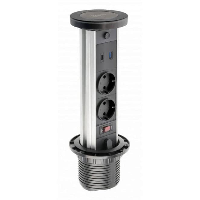 Multipriza 2 posturi GTV, 2x2P+E+2xUSB, retractabila, negru, 16A, AE-BPW2SCAM-20