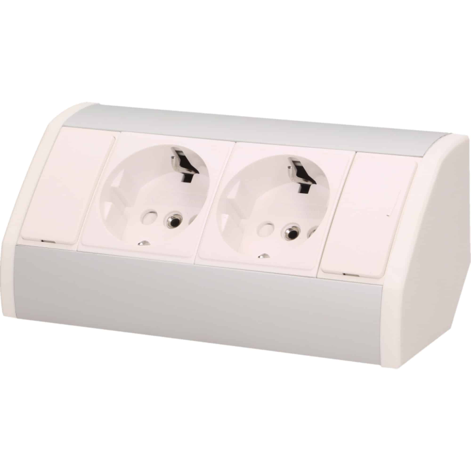 Multipriza 2 posturi Orno, 2P+E, de colt, alb, 16A, 9005