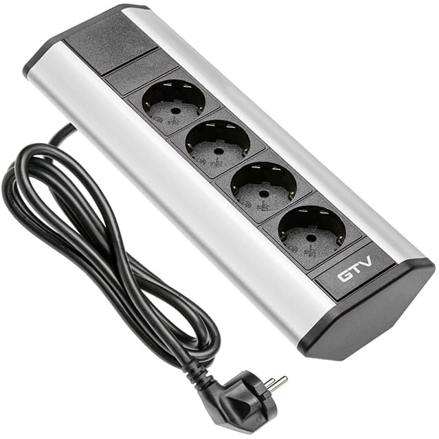 Multipriza 4 posturi GTV, 4x2P+E, de colt, negru/argintiu, 16A