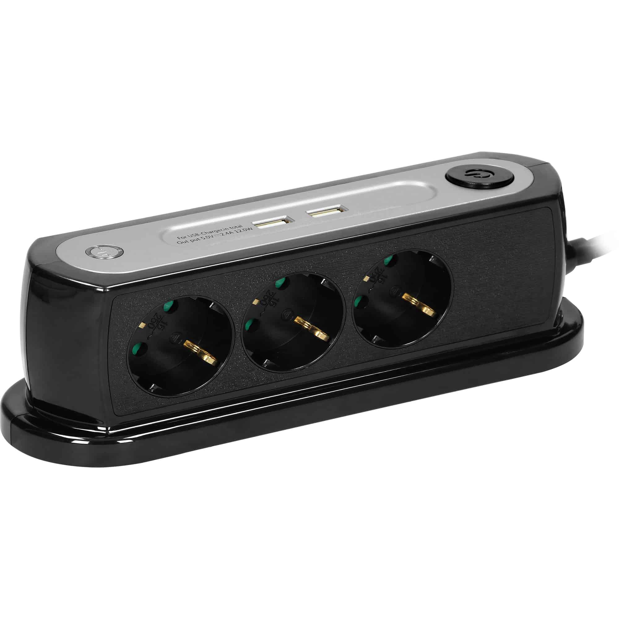 Multipriza pentru birou, dispozitiv perfect si util destinat conectarii diferitelor tipuri de aparate electrice, inclusiv celor care pot fi incarcate prin USB. Este prevazuta cu 3 prize de curent cu protectie la supratensiune (tip 3) si 2 porturi USB incorporate intr-o cutie de mici dimensiuni care nu ocupa mult loc pe birou. In plus, aceasta multipriza este prevazuta cu un comutator principal si cablu de 1.4m. Electric Casa recomanda prelungitor 3 posturi Orno.