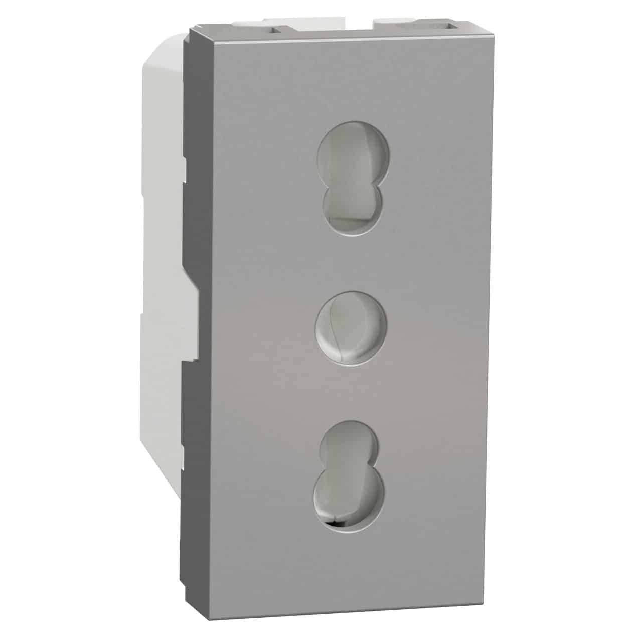 Priza modulara 2P+E Schneider, aluminiu, 1M, 16A, Noua Unica, NU302330