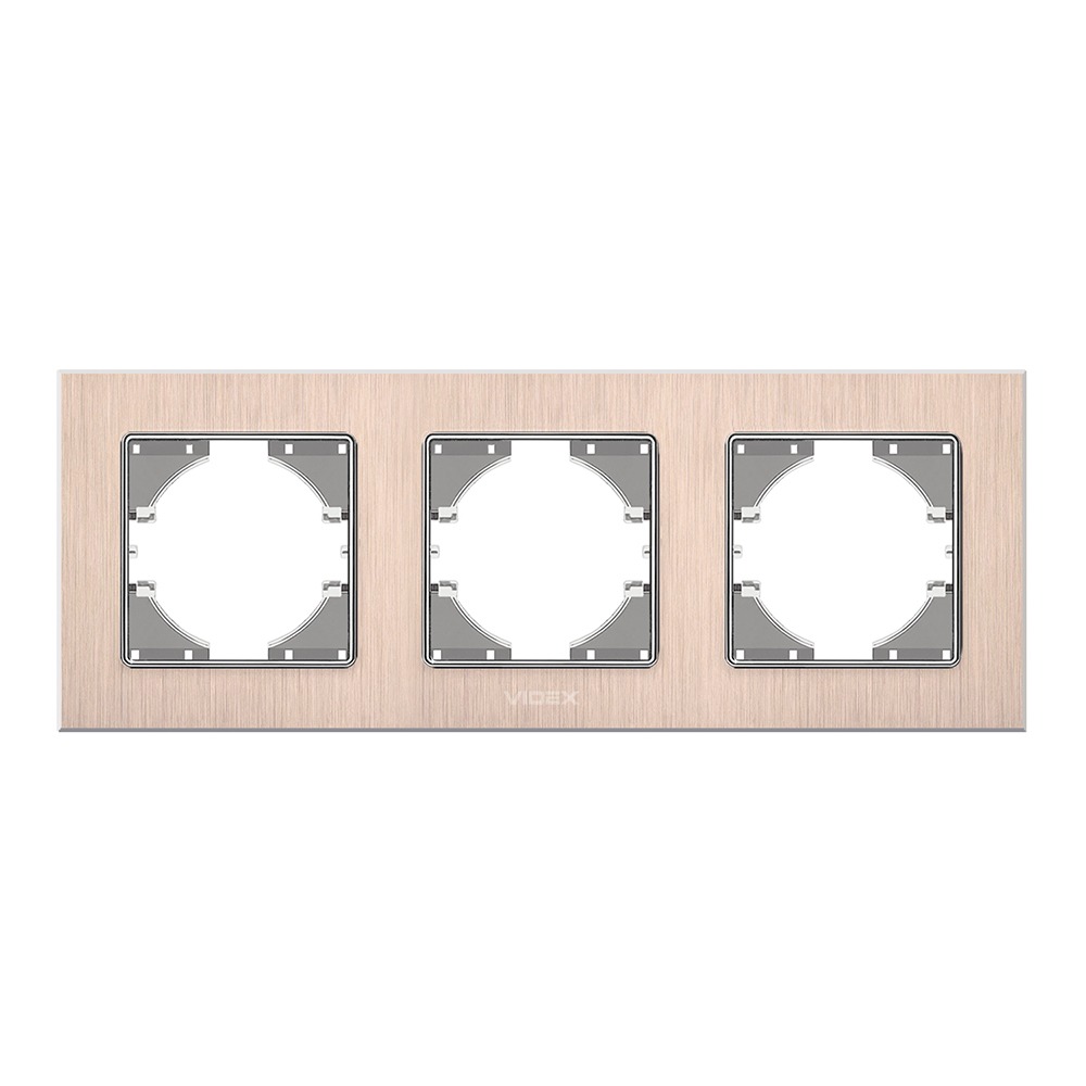 Rama decorativa aparataj unitar Videx, orizontala, 3 posturi, roz, aluminiu