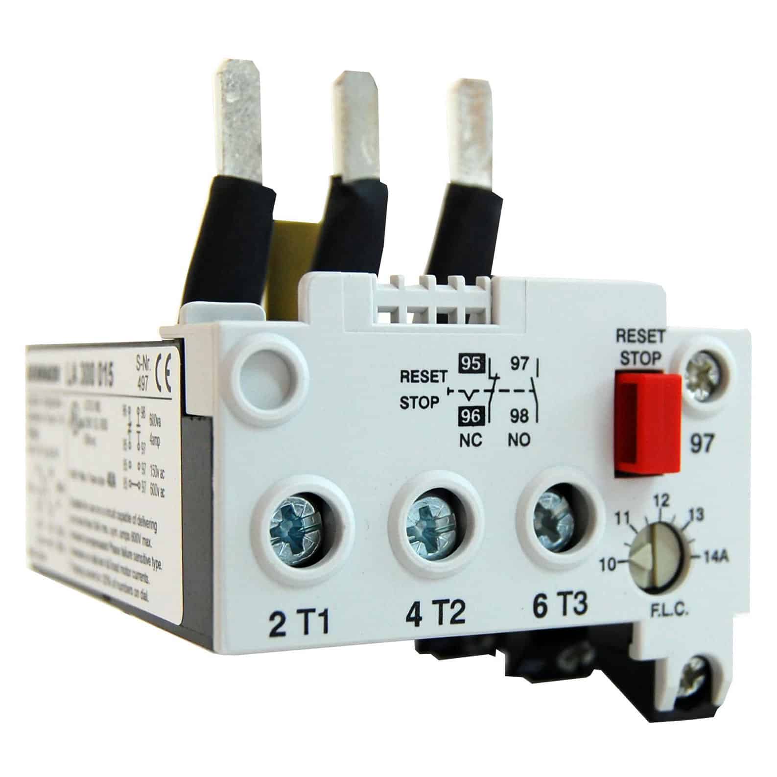 Atașabile direct pe contactoare K(G)3-24 până la K(G)3-40 - Curenți nominali pentru pornire directă de la 10A până la 42A - Curenți nominali pentru pornire stea-triunghi de la 18A până la 73A Valorea de reglaj a releului termic la pornire stea triunghi = curent nominal motor In x 0,58 - Contacte auxiliare 1 NÎ și 1 ND (95/96, 97/98) - Resetare manuală.