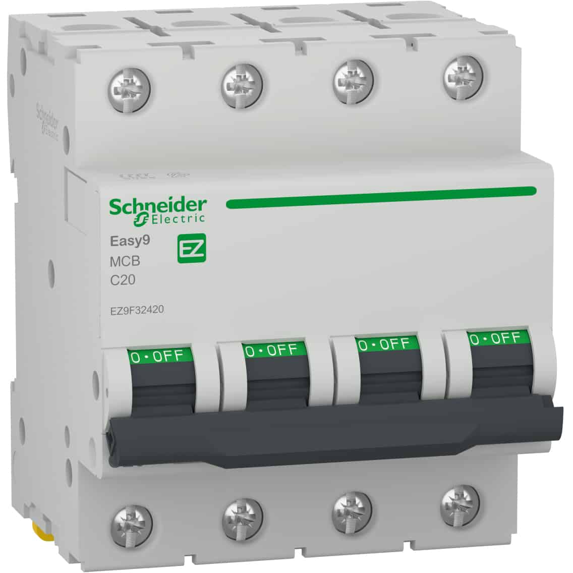 Siguranta automata (disjunctor) tetrapolara Schneider, 4P, 20A, curba C, 4.5kA, EZ9F32420